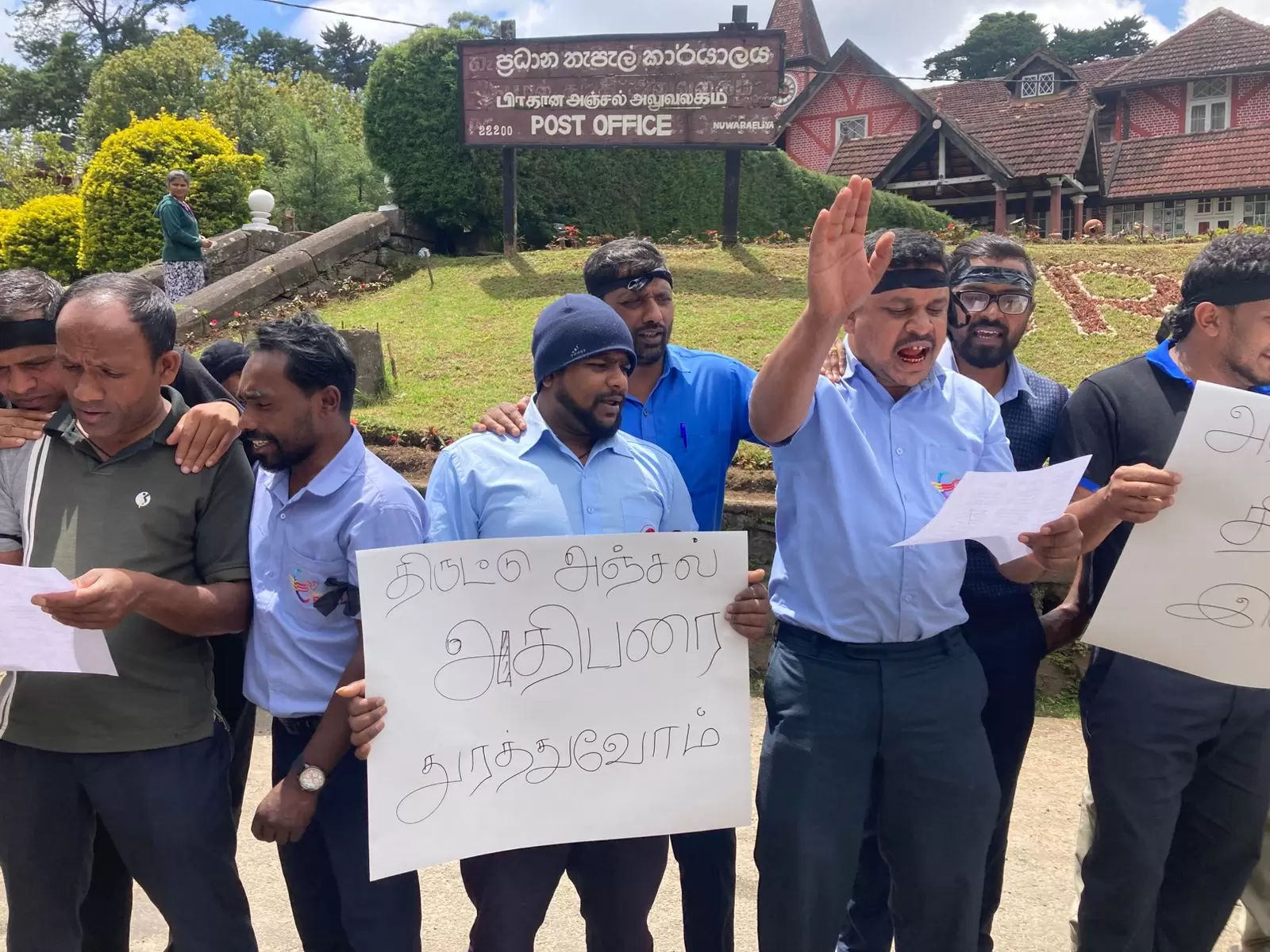 உலக அஞ்சல் தினத்தினை கறுப்பு தினமாக நினைவு கூரும் முகமாகவும் தபால் பணியாளர்கள், முறைக்கேடாக மேலதிக கொடுப்பனவை பெற்றுள்ளதாக தபால் மா அதிபர் வெளியிட்டுள்ள கருத்துக்கு எதிர்ப்பு தெரிவித்தும் நுவரெலியா பிரதான தபால் நிலையத்தில் தொழில் புரியும் ஊழியர்கள் தலையில் கறுப்புப் பட்டி அணிந்து குறித்த போராட்டத்தை முன்னெடுக்கப்பட்டிருந்தது.